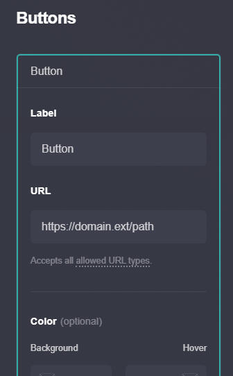 Videos, on the other hand, allow you to either directly upload a video to display or embed a video. When embedding a video, you can input any video link from Youtube, Twitch, or Vimeo. If uploading a video, you can also control if it auto plays, loops, is muted, and if people can control the video.